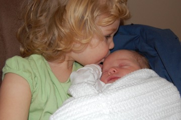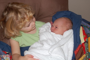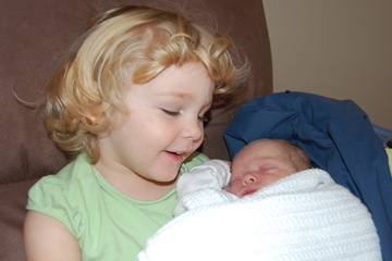 Ellie is starting to relish her big sister role, she loves to hold Baby Megs!