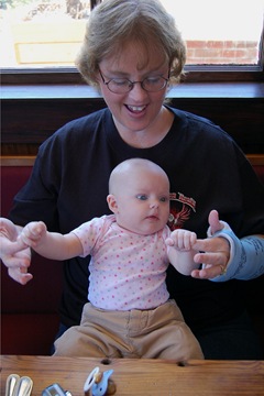Nanny and Megs hanging out. We hope your wrist heals soon, Nanny!