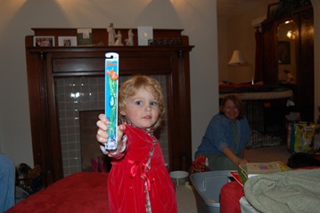 On Christmas Eve we had Christmas with Grandma Cindy and Grandpa Mike after church. Here is Ellie's new toothbrush!
