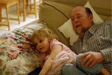 Ellie and Papa watching Flushed Away (Ellie's new favorite movie, along with The Iron Giant)